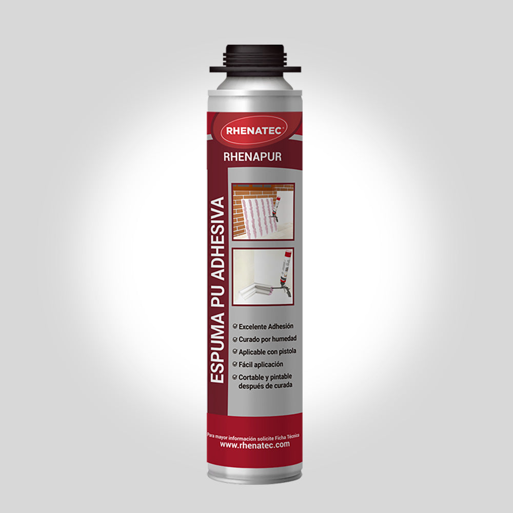 Espuma de poliuretano adhesiva monocomponente color rosa suave, con curado a la humedad, diseñada para unir elementos de construcción.