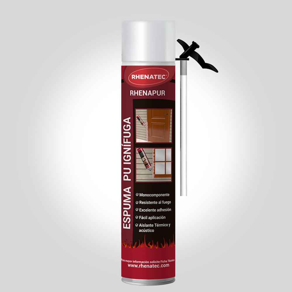 Espuma de poliuretano ignífuga monocomponente color naranjo suave, que una vez curada, es resistente al fuego y se usa para relleno y aislación de materiales de construcción.
